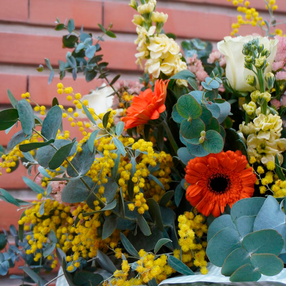 Ramo de flores naturales donde la mimosa es la protagonista. Alegre, luminoso y delicado.
