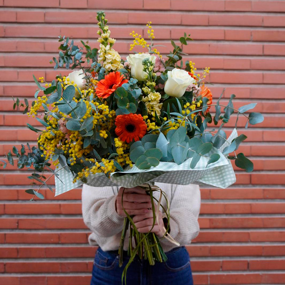 Este ramo de flores naturales destaca la belleza de la mimosa, convirtiéndola en la flor principal del arreglo. Acompañada de otras flores y verdes cuidadosamente seleccionados, la mimosa aporta color, textura y un aroma característico que llena de vida cualquier espacio.