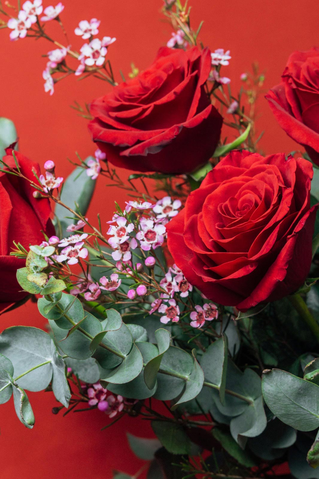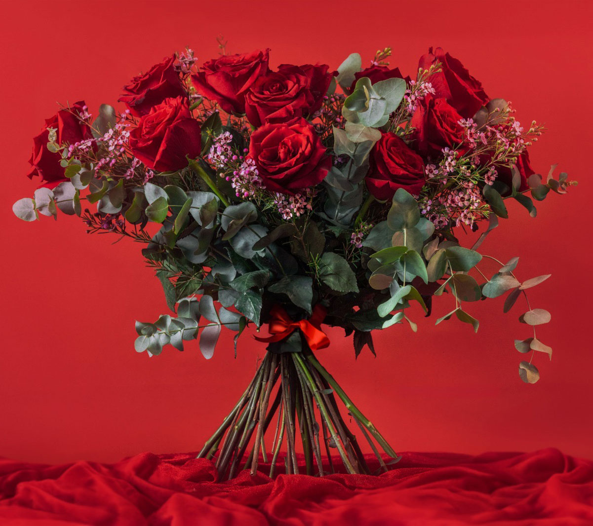 Ramo de rosas rojas frescas. Escoge 6 o 12 rosas para celebrar el amor en su forma más pura. Perfectas para San Valentín